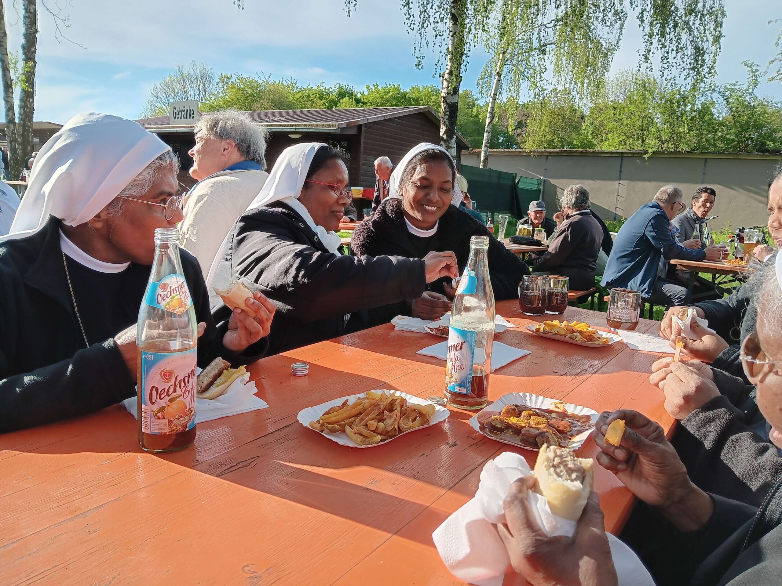 Nach dem Gottesdienst bestand noch die Möglichkeit, sich im nahe bei der Wallfahrtskirche gelegenen Biergarten bei einem Imbiss zu stärken, zu begegnen und miteinander ins Gespräch zu kommen. Um 19 Uhr fuhr dann der Bus wieder alle Wallfahrerinnen und Wallfahrer zurück nach Würzburg.